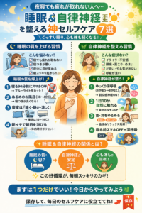 私たちが忘れてはならない決定的な事実があります。それは、「脳の回復は睡眠中にしか行われない」ということです。どんなに優れたセルフケアも、質の高い睡眠には及びません。